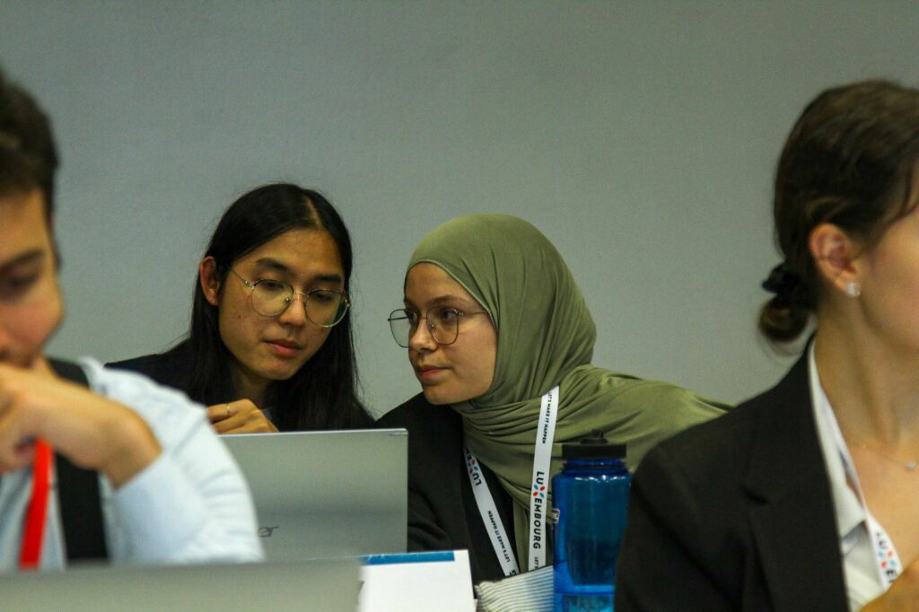 Depuis 2007, une politique verte a été mise en place afin de réduire l’empreinte écologique de notre simulation. Cette politique vise notamment à réduire drastiquement le nombre de documents imprimés à l’occasion de la simulation, notamment de ceux qui étaient auparavant distribués aux participants. Poursuivant ce même objectif, l’usage des nouvelles technologies a été fortement développé et encouragé afin de faciliter le travail, puis les échanges des participants avant, pendant ainsi qu’après la simulation.